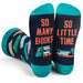 Luxuriously comfortable and beautifully designed dress style crew socks for bookworms and reading lovers. Features a vivid pattern of blue, green and orange books that looks great at home, work or play. The bottom of the socks feature a secret hidden message that’s sure to bring a smile to their face when they see them: “So Many Books, So Little Time”. Our bookshelves agree with that sentiment!